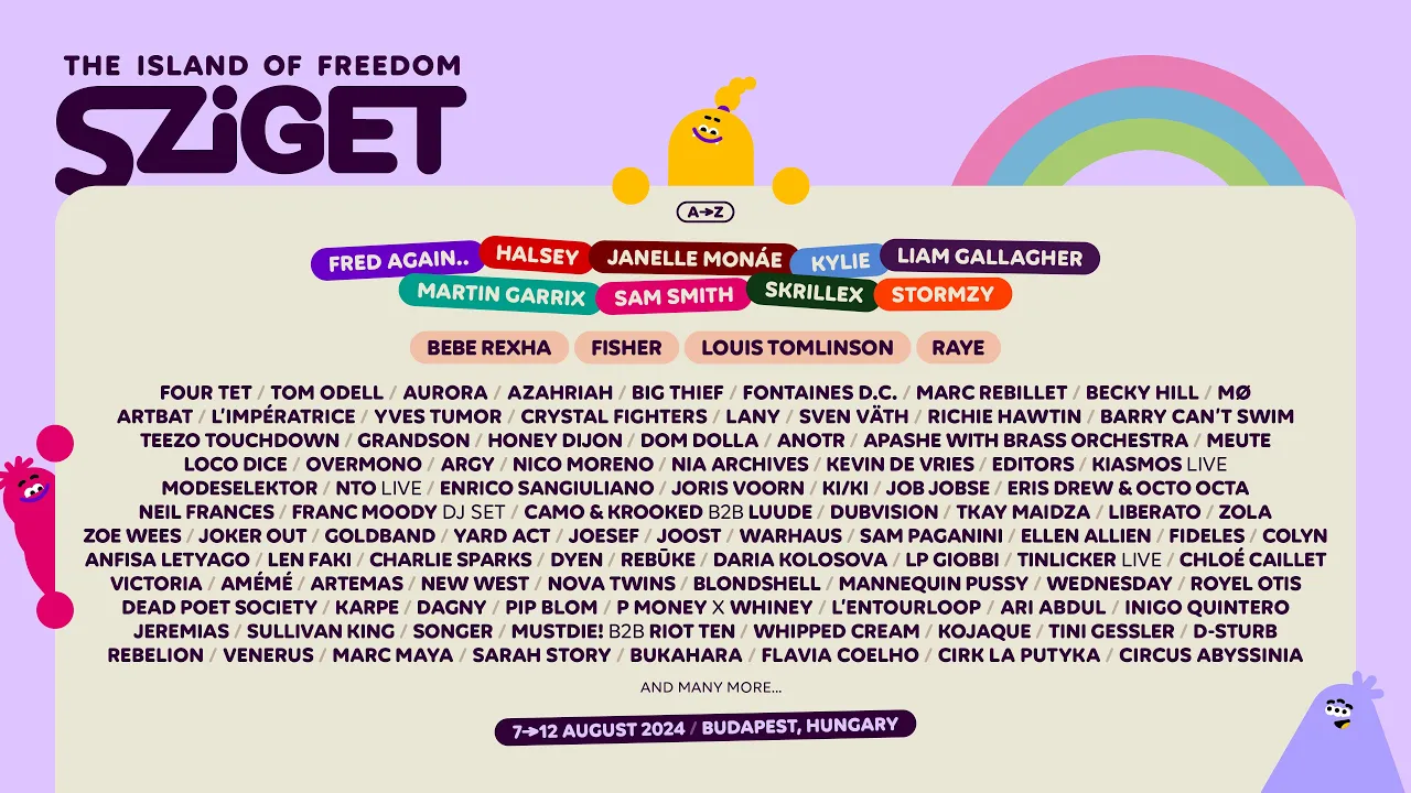 Festival iconique de Budapest, le Sziget réunit chaque année près de 500 000 festivalier·es pour une grande fête d’une semaine. Pour cette édition 2024, « l’Île de la Liberté » et ses 60 espaces scéniques verront des centaines d’artistes se produire, dont Skrillex, Aurora, Martin Garrix, Liam Gallagher, Becky Hill…